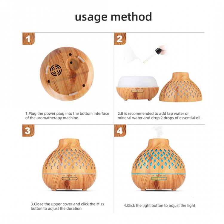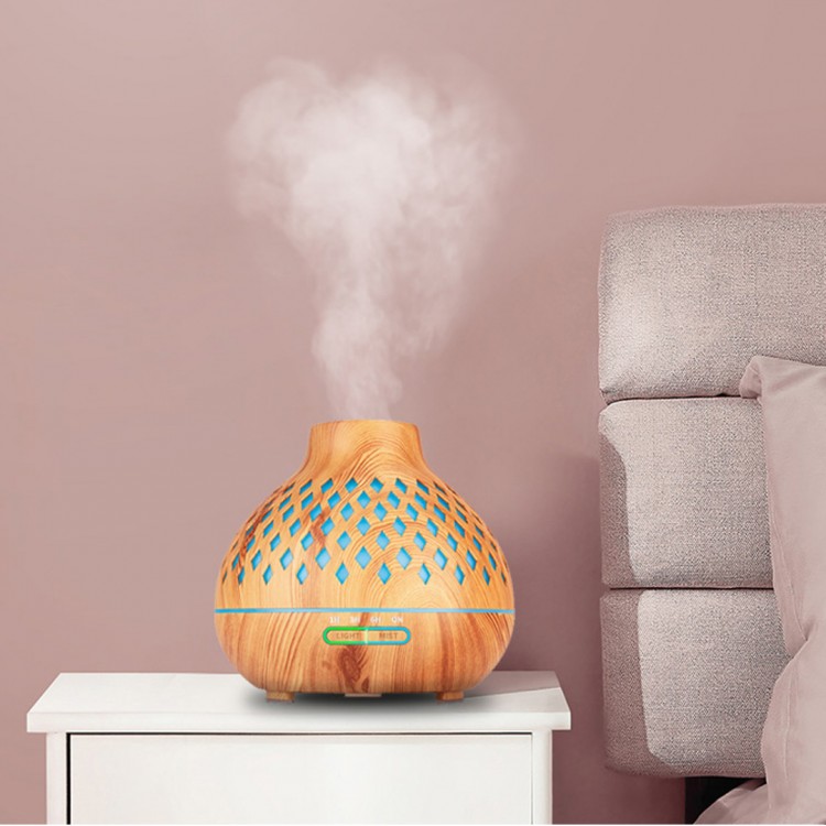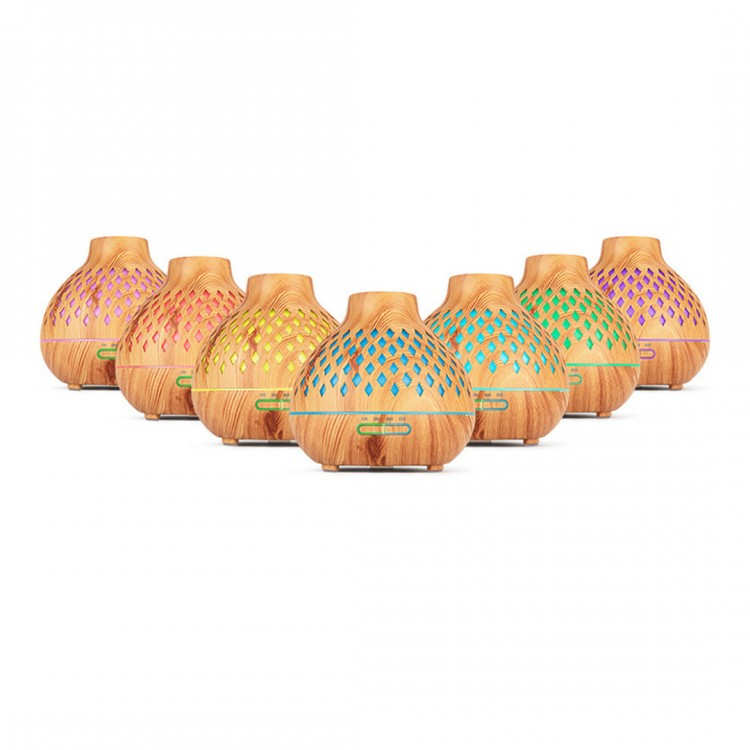 Umidificatorul are un design modern, cu aspect de lemn (2 nuante), culori diferite de lumina LED, este foarte silentios si iti poate crea mediul perfect pentru relaxare sau odihna. Este companionul ce te poate scapa de stres, durerile de cap si contribui la incarcarea ta de energie. Nivelul de zgomot este unul foarte scazut contribuind la sesiunile de meditatie sau la un somn dulce, odihnitor.