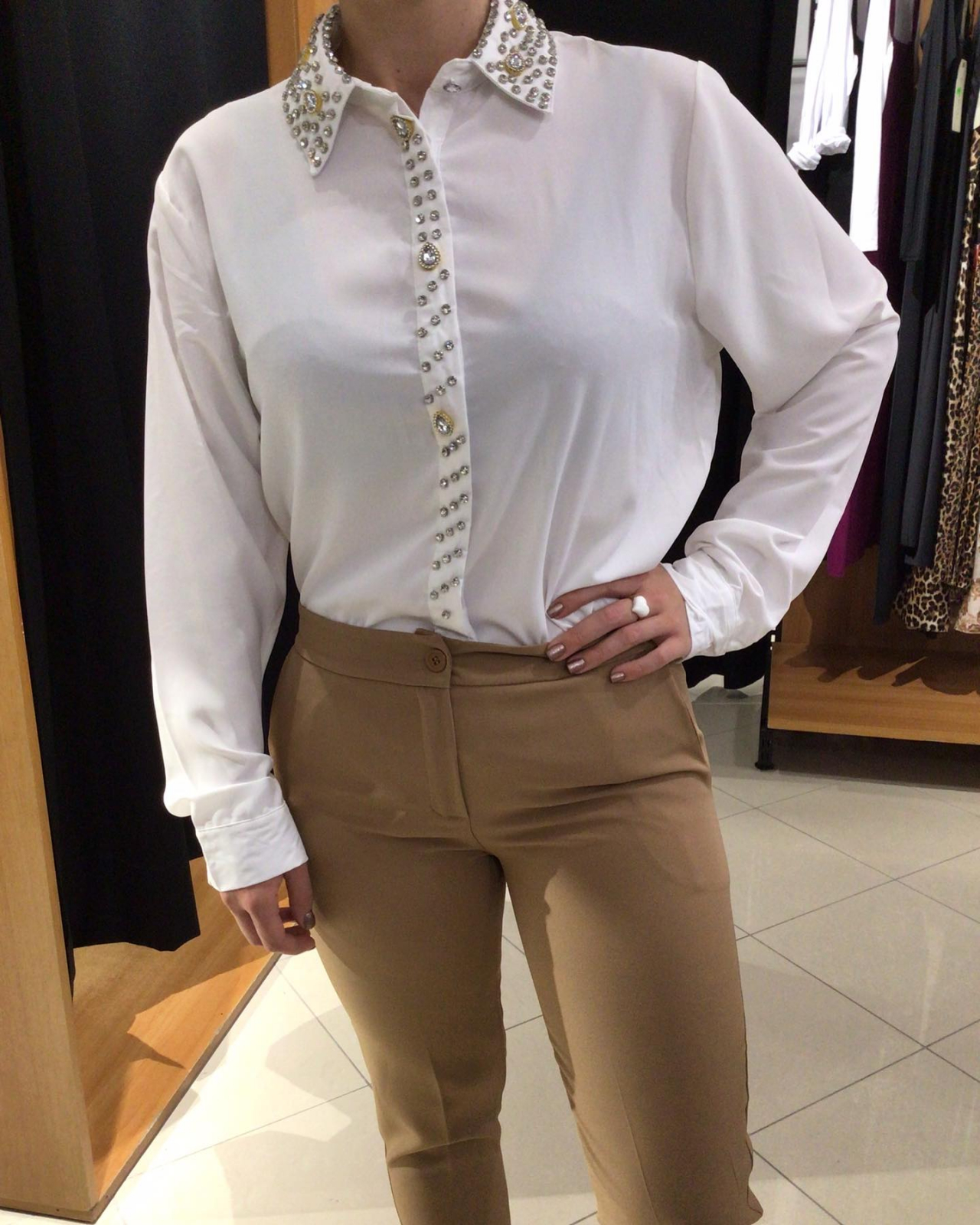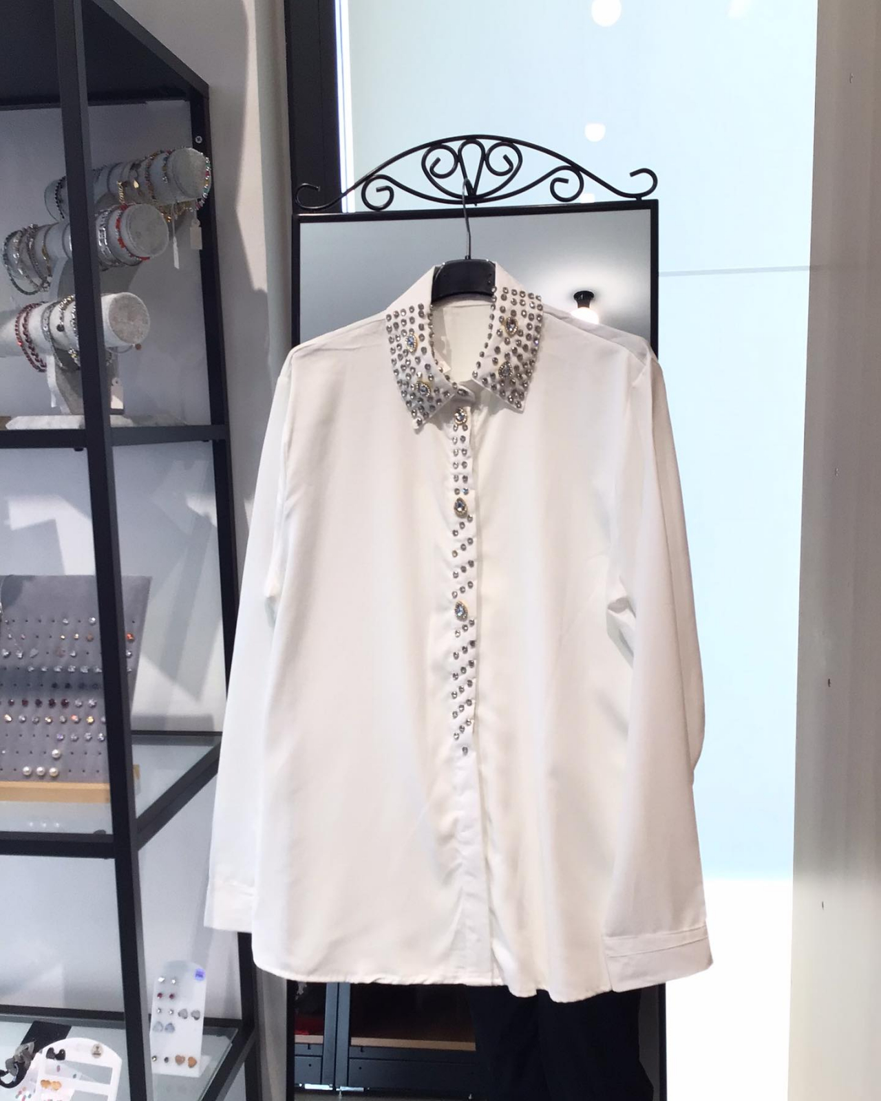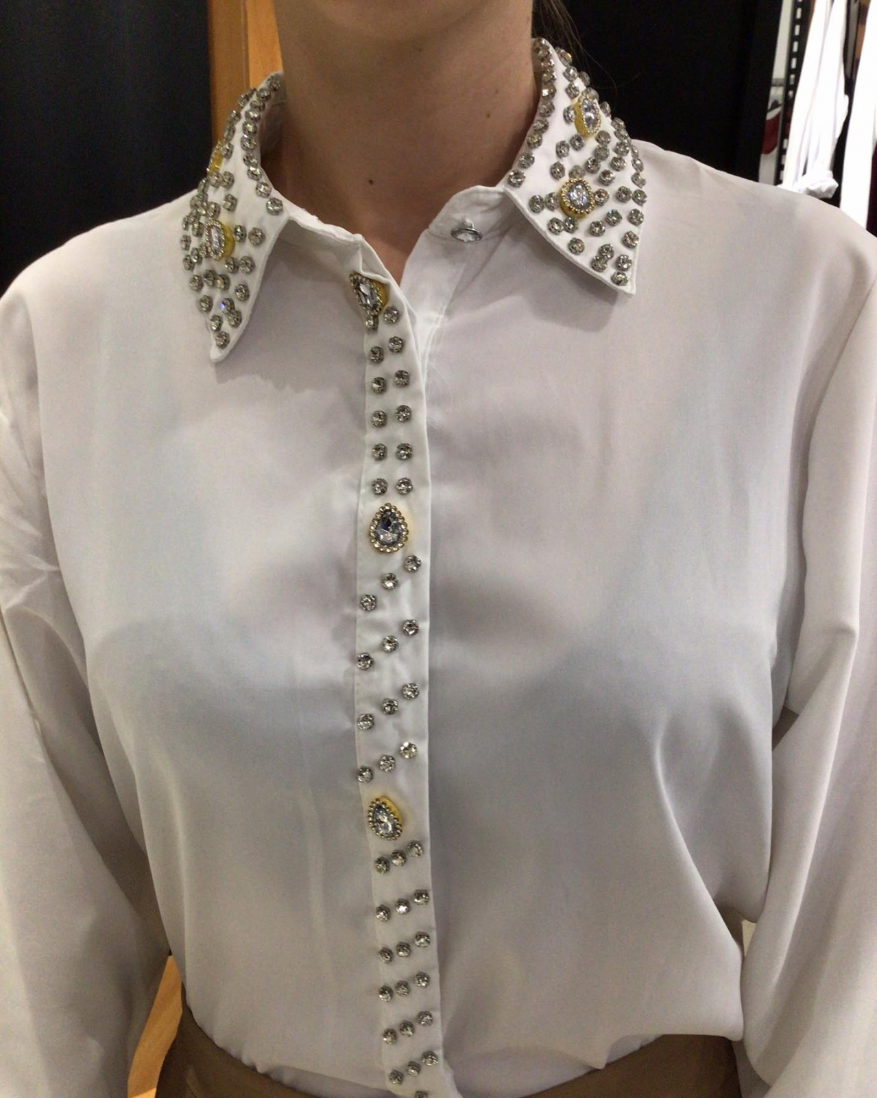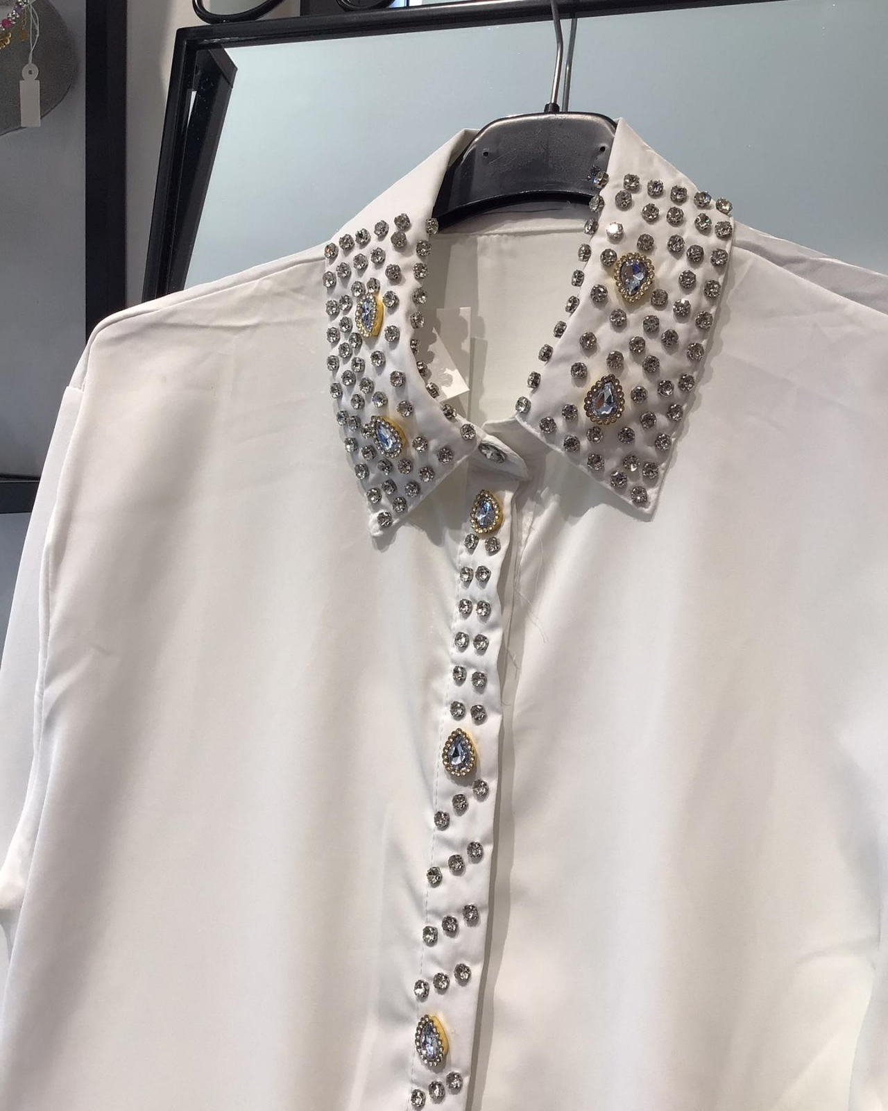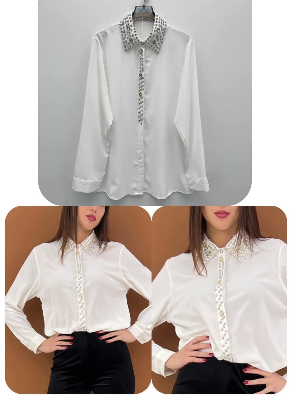Bluza Dama, Camasa Dama Ivy cu Guler Ascutit si Strasuri si Perle Decorative - ALN
