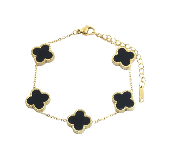 Bratara din otel cu trifoi circulari negri - br135