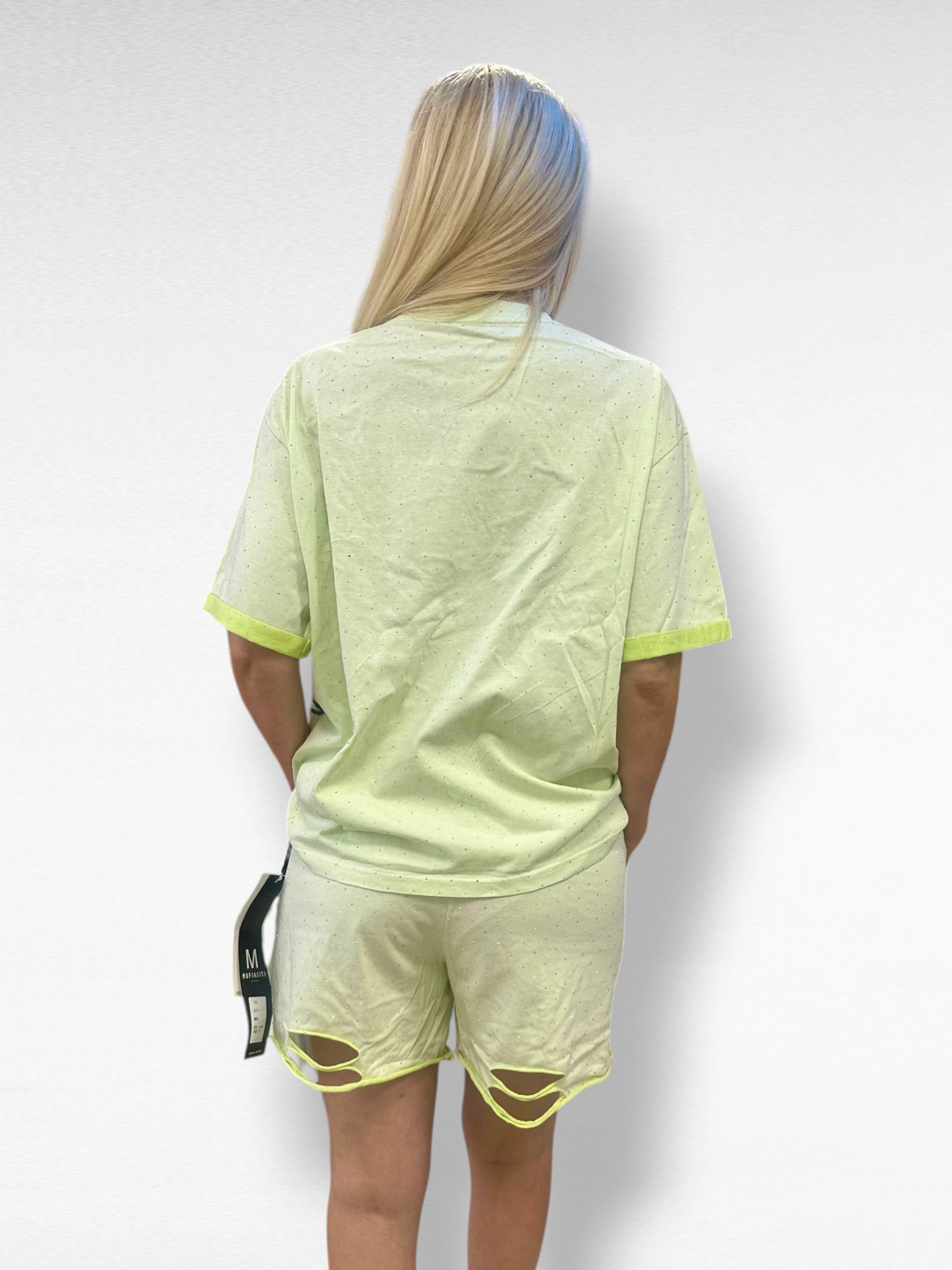Tricou oversize cu maneca scurta si aplicatii stralucitoare;
