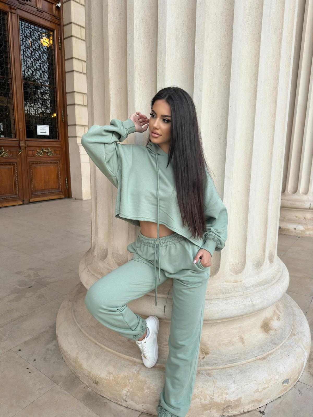 Compleu Dama 2 Piese din Bumbac - Set 2 Piese Hanorac Crop si Pantaloni