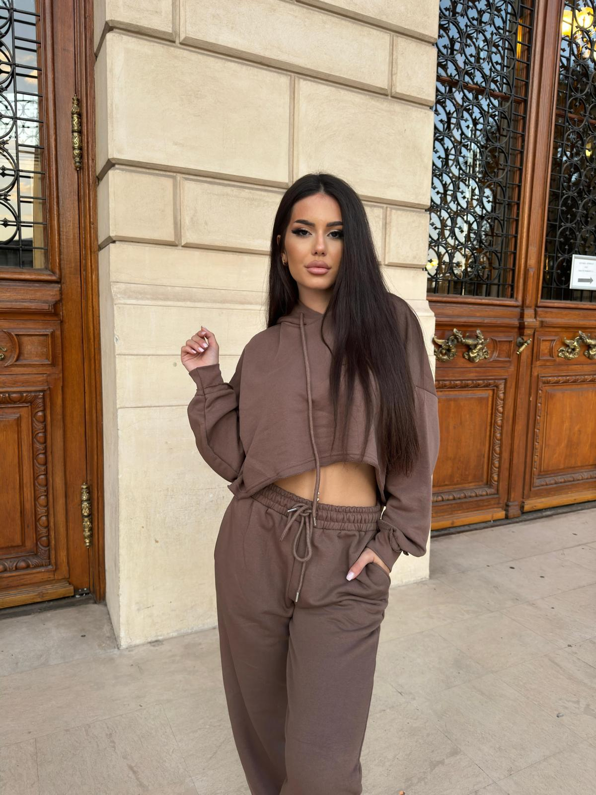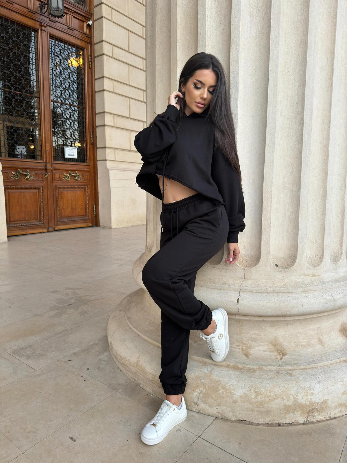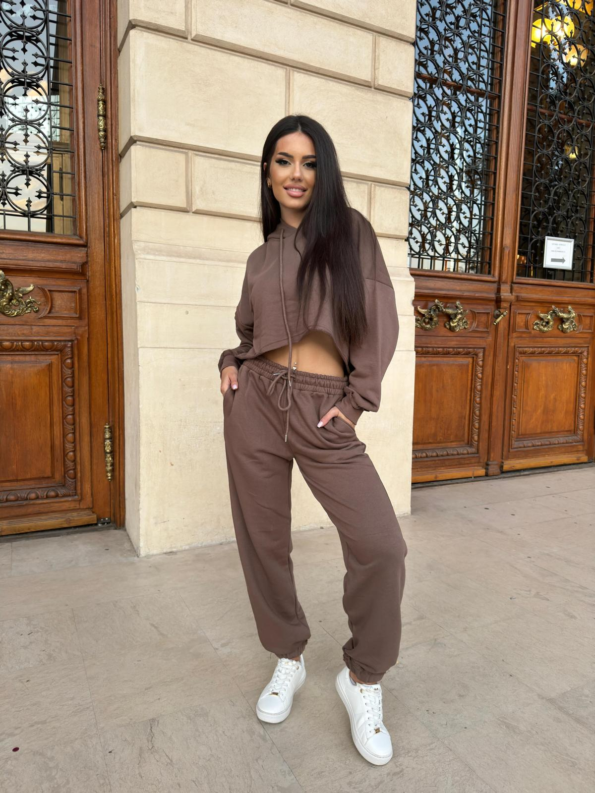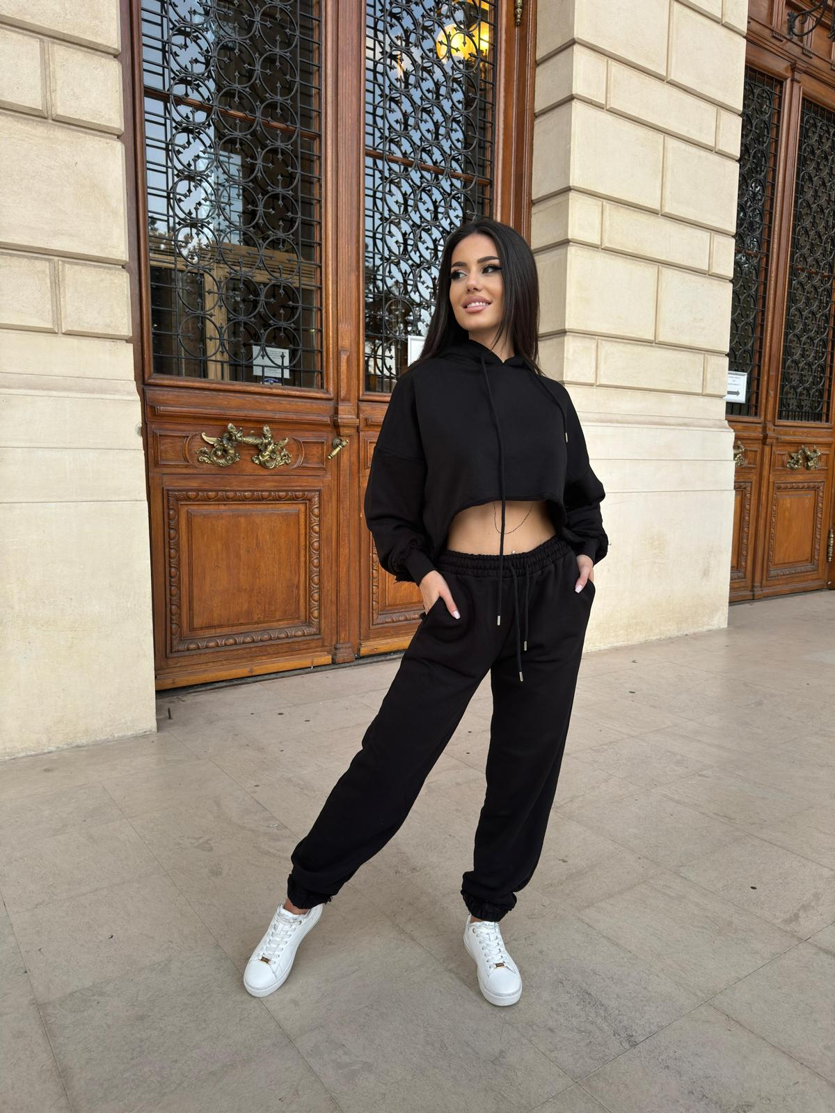 Compleu Dama 2 Piese din Bumbac - Set 2 Piese Hanorac Crop si Pantaloni