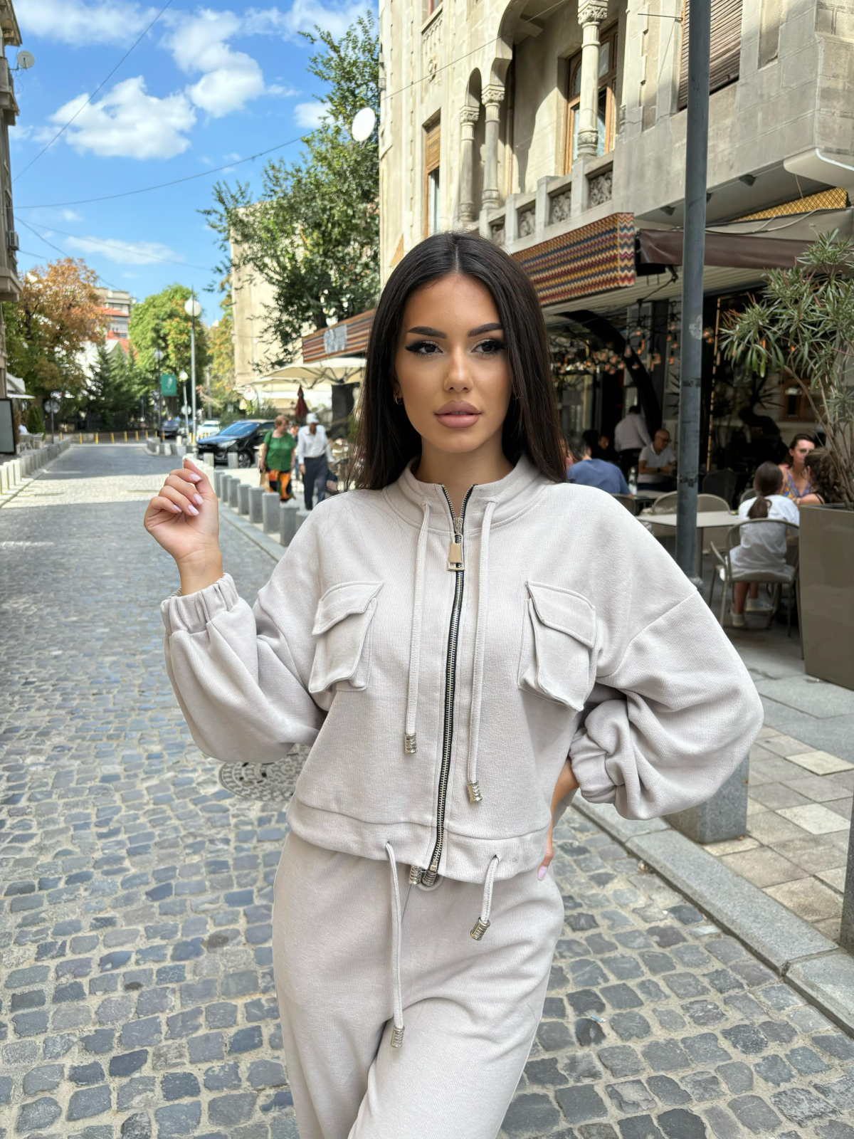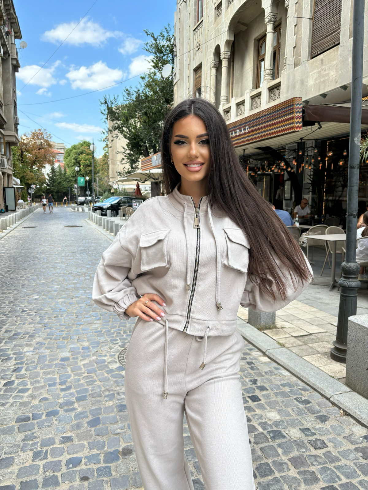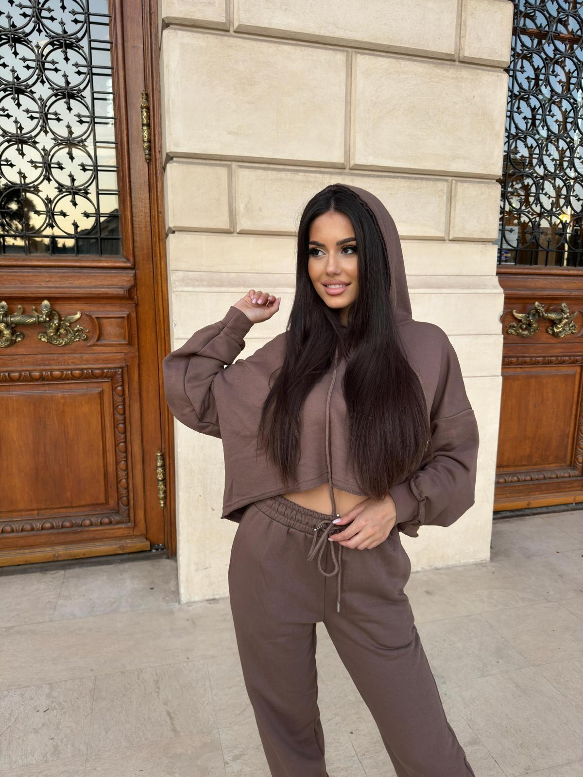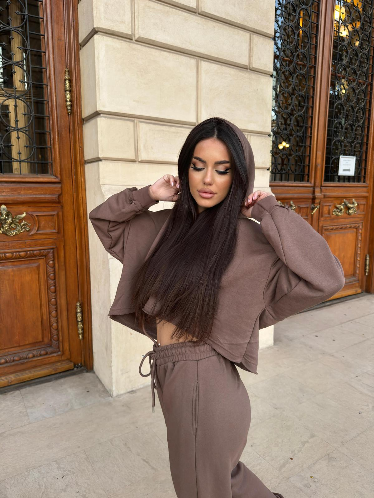 Compleu Dama 2 Piese din Bumbac - Set 2 Piese Hanorac Crop si Pantaloni