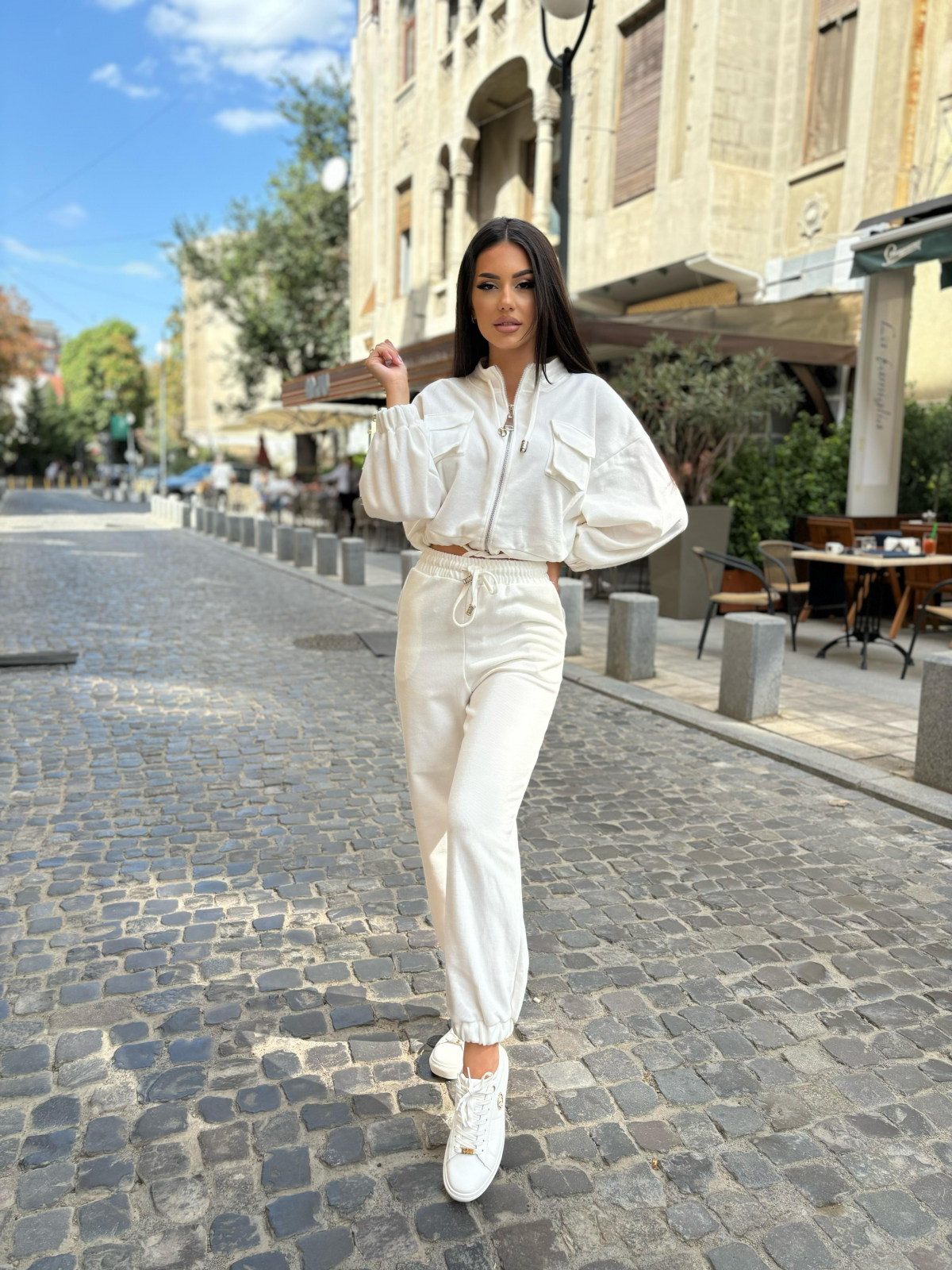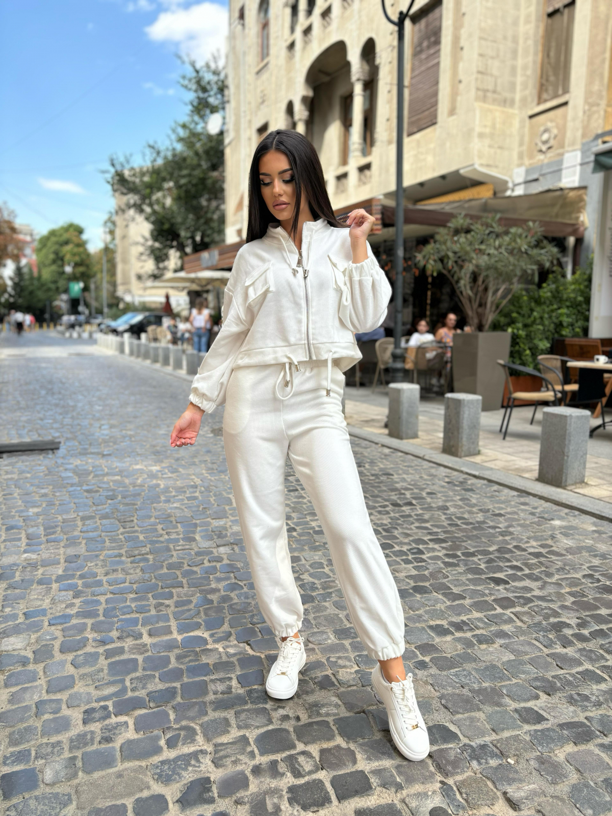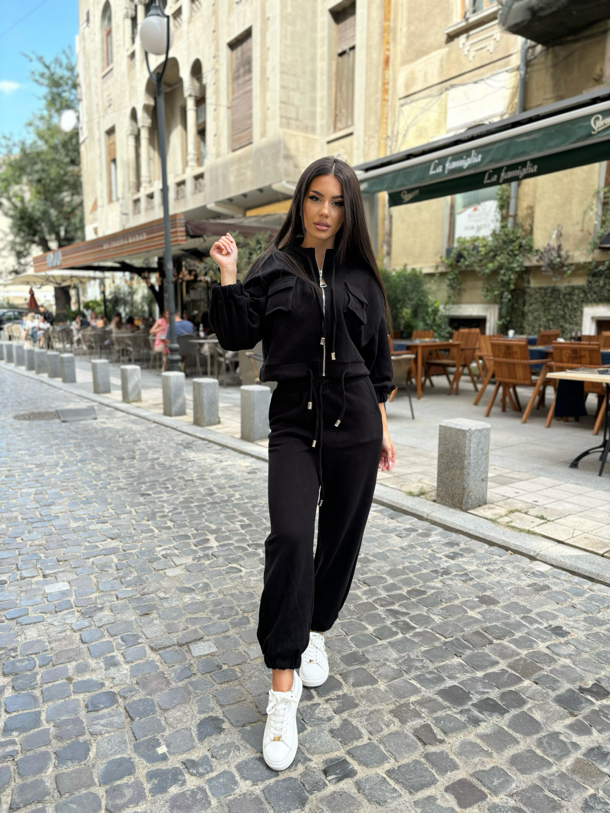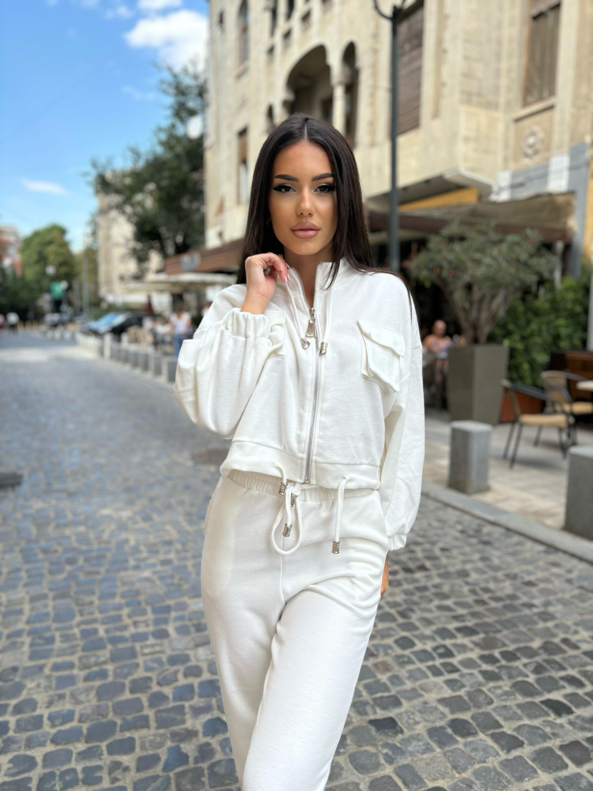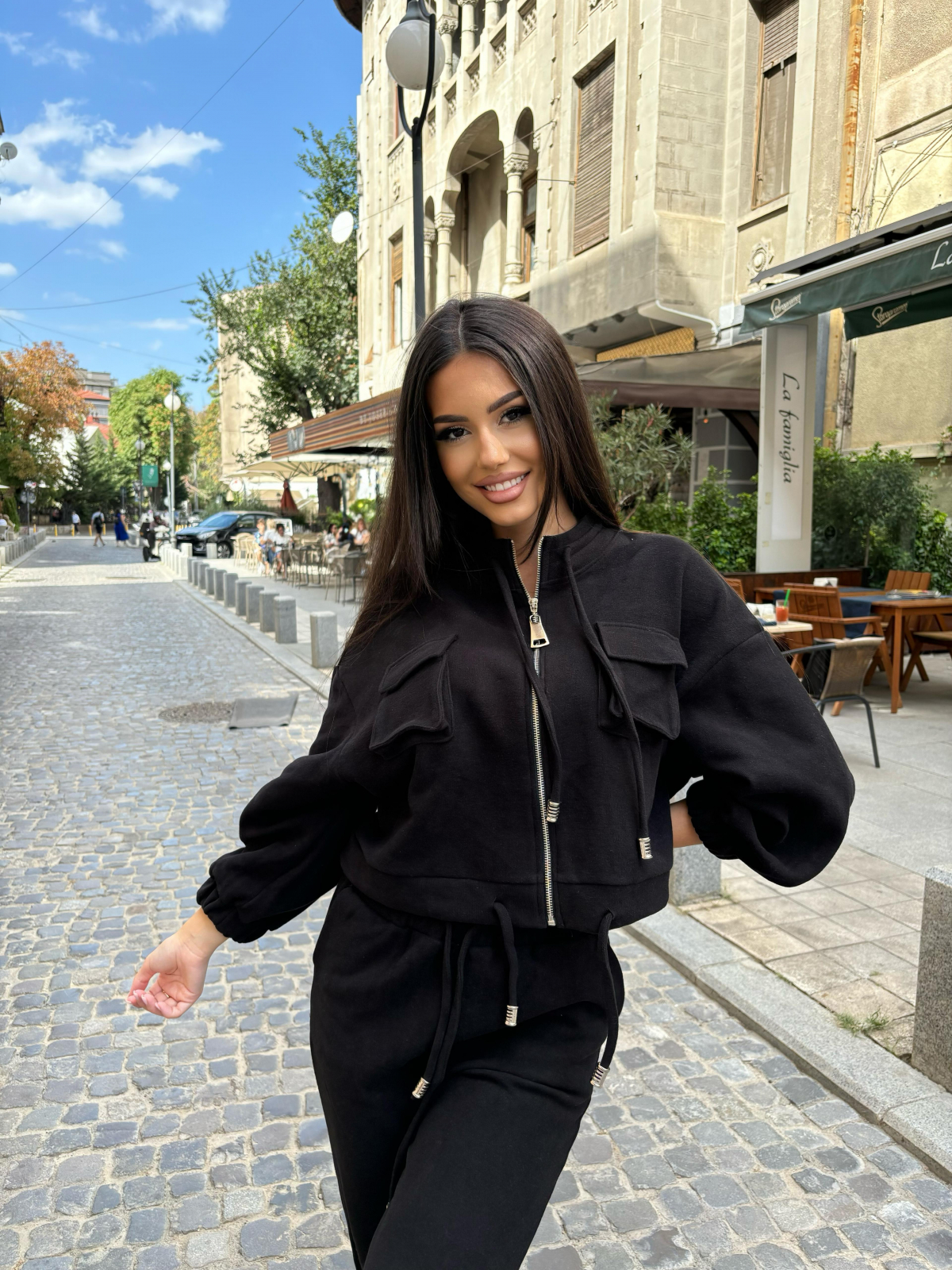 Compleu Dama 2 Piese din Bumbac - Set 2 Piese Hanorac Crop si Pantaloni