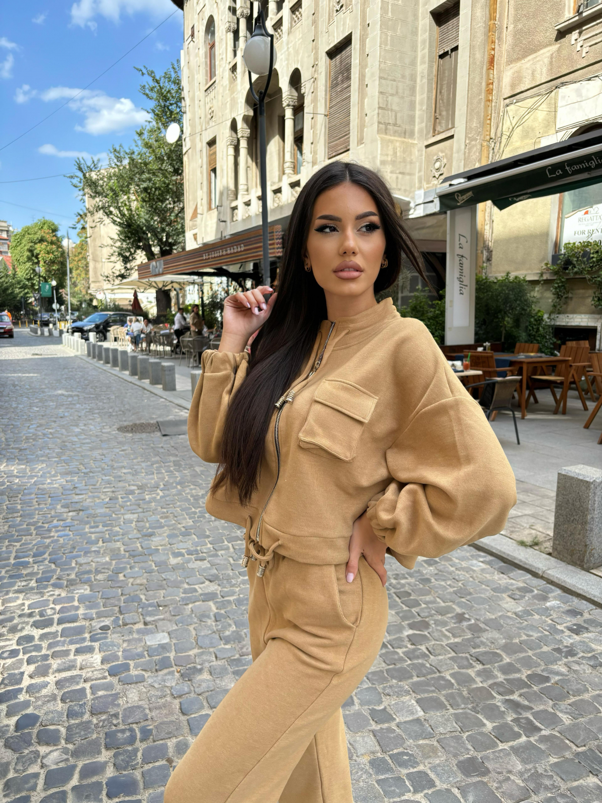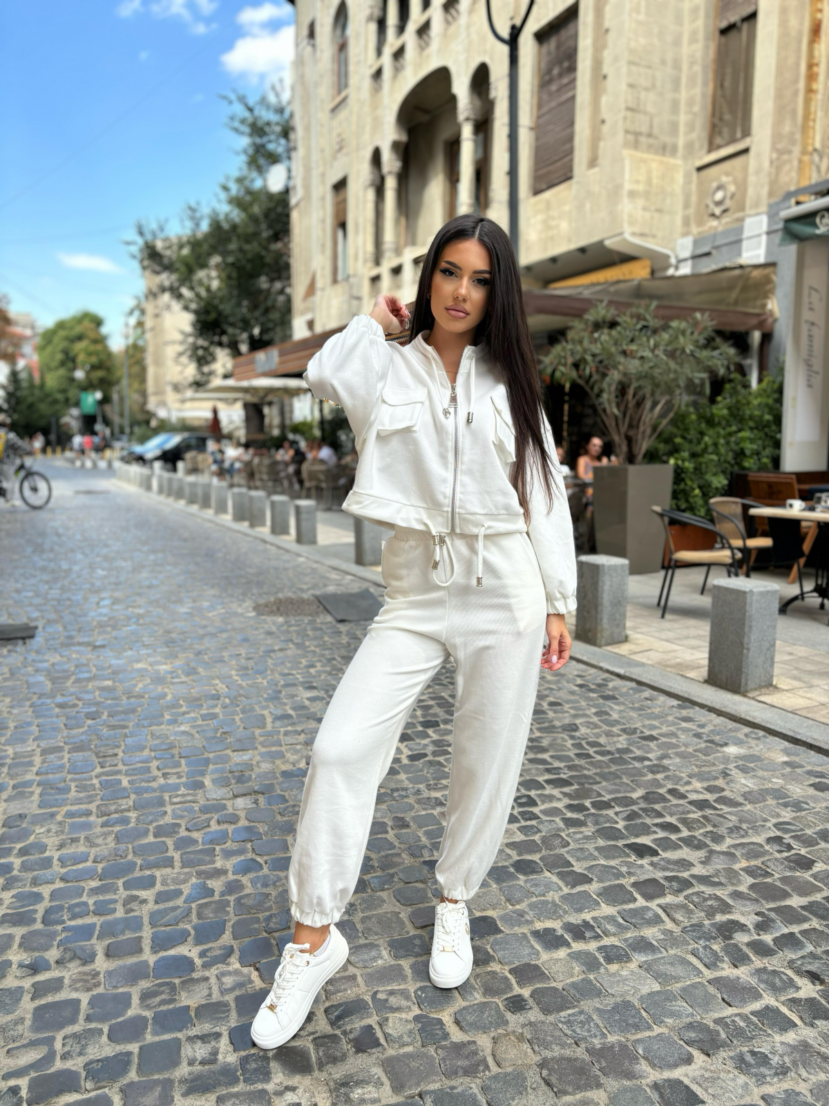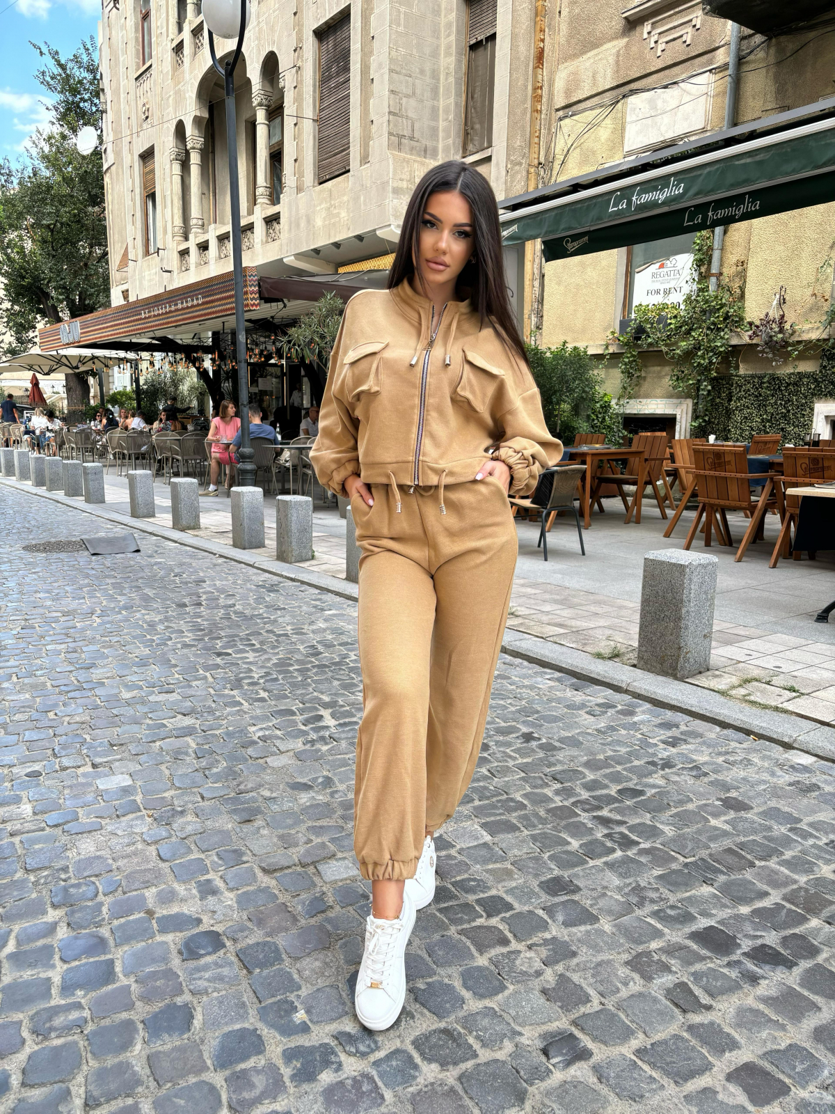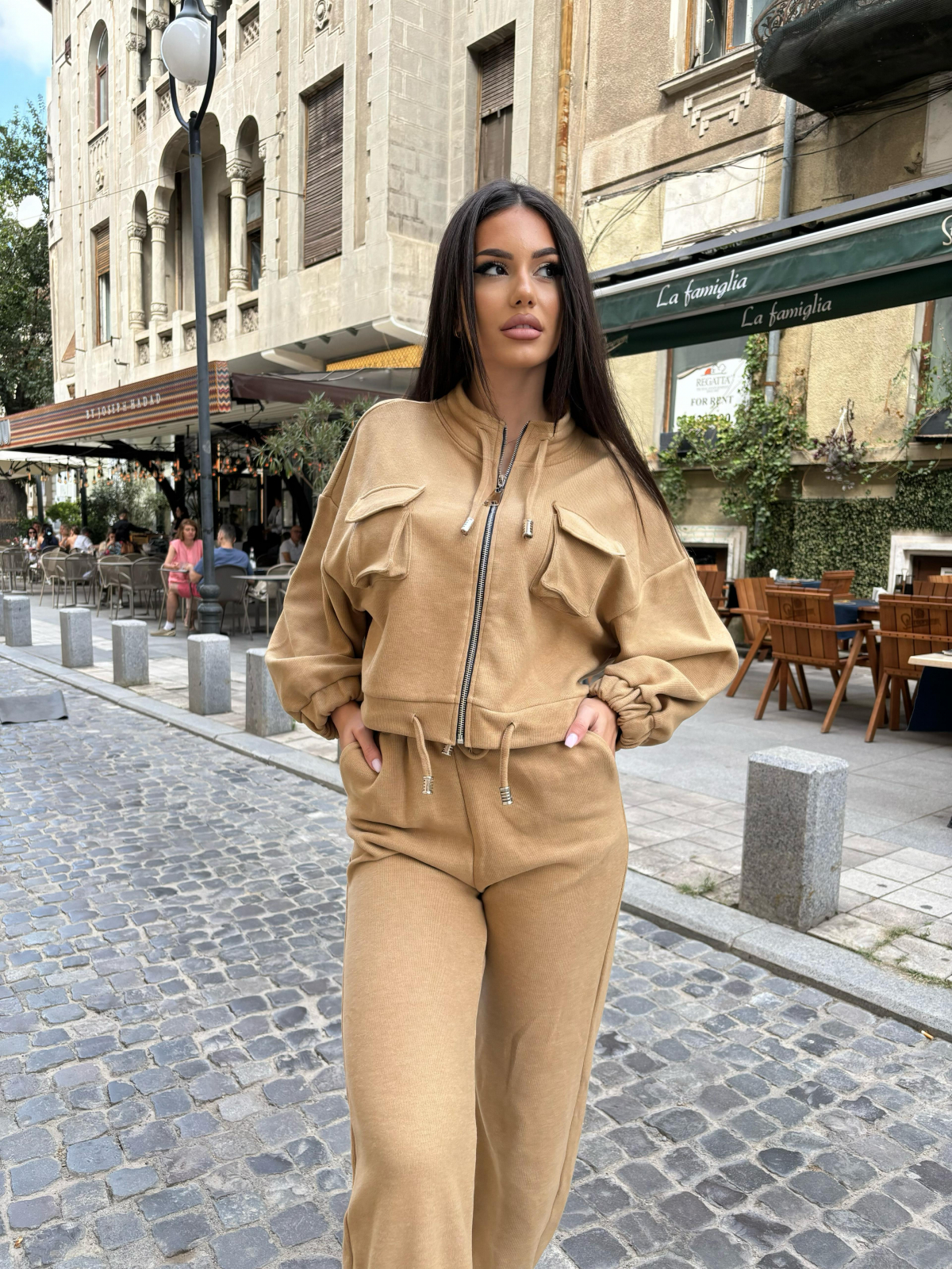 Compleu Dama 2 Piese din Bumbac - Set 2 Piese Hanorac Crop si Pantaloni