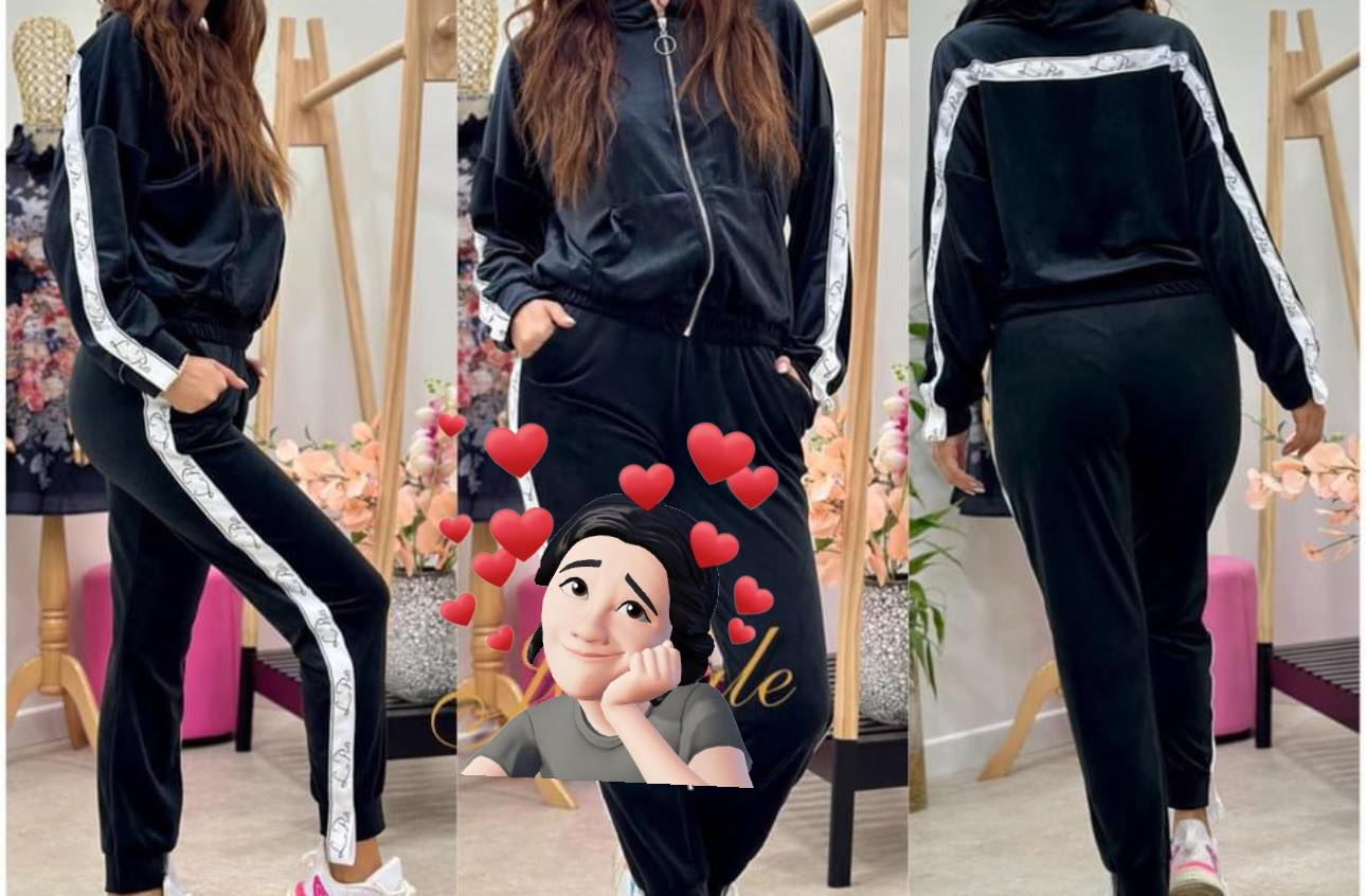 Transformă-ți garderoba cu acest compleu damă din catifea, perfect pentru momentele în care vrei să îmbini stilul cu confortul. Setul include pantaloni lejeri, strânși cu elastic la gleznă, și un hanorac cu glugă, fermoar și buzunare laterale, ideal pentru a-ți completa look-ul casual, dar sofisticat. Fabricat din catifea foarte fină, acest compleu îți oferă o senzație plăcută la atingere și un aspect luxos, potrivindu-se perfect în orice moment al zilei.