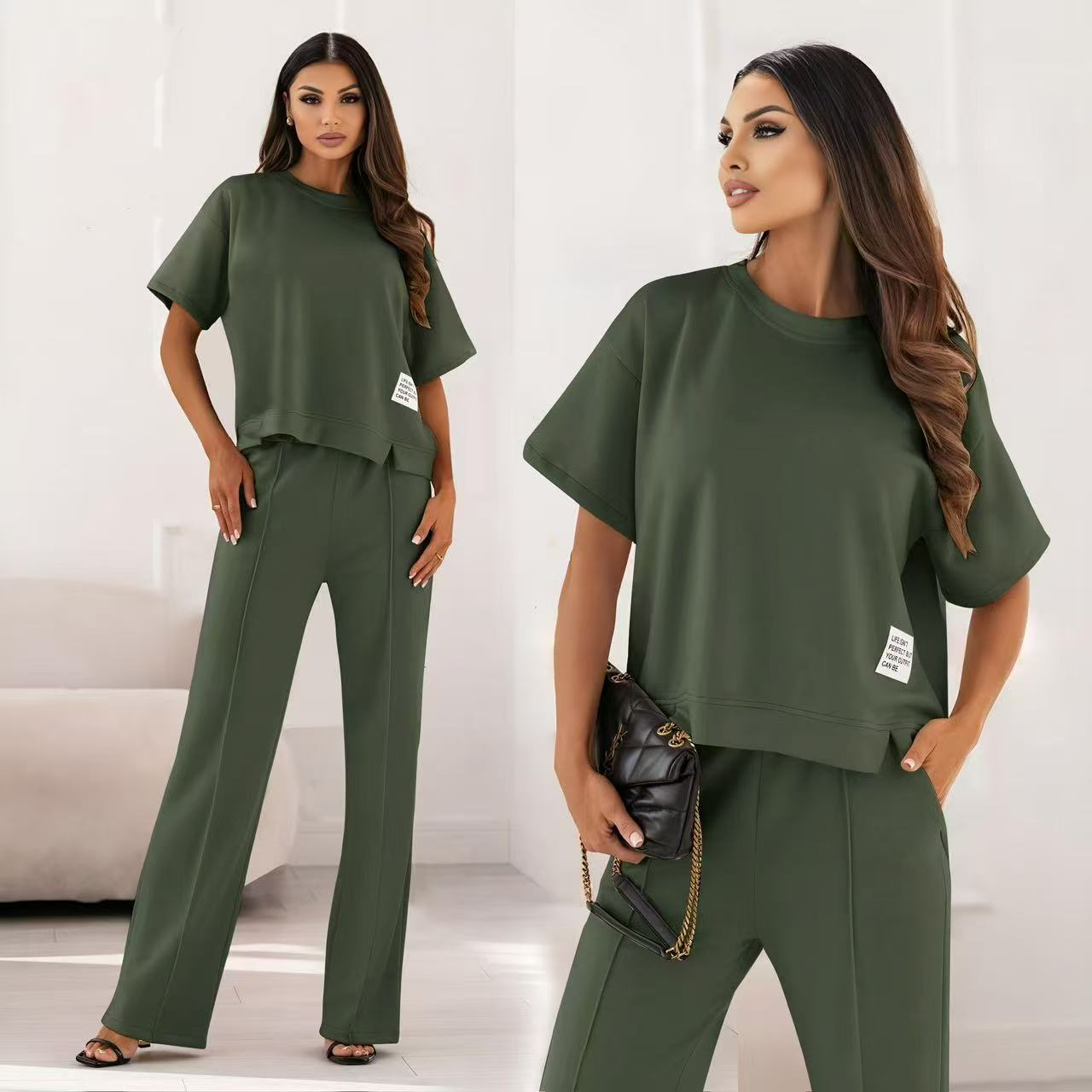 Alege un compleu dama doua piese modern si versatil, perfect pentru zilele in care vrei sa arati bine fara efort. Setul este compus din bluza lejera cu maneca scurta si pantaloni lungi cu croiala ampla, oferind un echilibru foarte bun intre confort, stil si eleganta relaxata. Designul minimalist il face usor de purtat atat in tinute de zi, cat si in aparitii casual chic sau smart casual.