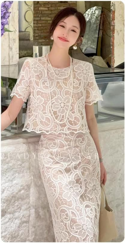 Alege rafinamentul și feminitatea cu acest set elegant din dantelă florală! Bluza cu mâneci scurte și fusta midi creează un look sofisticat și lejer, perfect pentru ocazii speciale sau zilele în care vrei să strălucești. Croiala lejeră asigură confort maxim, iar căptușeala din satin oferă un plus de finețe și rafinament. Disponibil în mărimi S-L, acest set este alegerea ideală pentru un stil romantic și modern!
