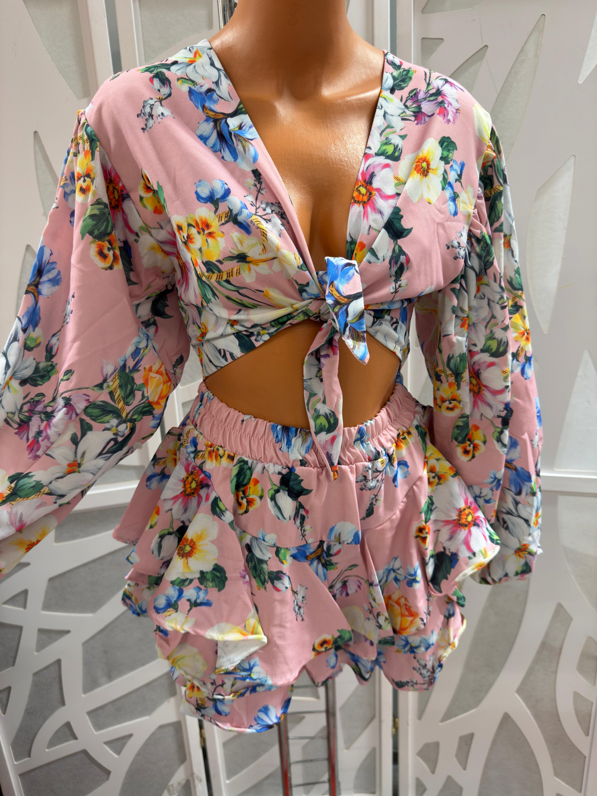 Exprima-ti stilul cu acest set chic compus din top cropped cu maneci bufante si fusta-pantalon cu aspect de mini-skirt. Confectionat dintr-un material vaporos si usor elastic, acest set ofera lejeritate, rafinament si libertate de miscare. Topul se leaga frontal, conturand bustul intr-un mod feminin, iar fusta-pantalon cu croiala asimetrica si talie elastica aduce un plus de confort si originalitate.