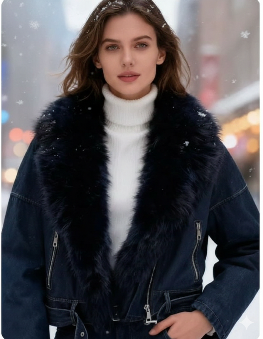 ❄️ Stil si Confort: Geaca din Denim cu Guler Statement din Blanita