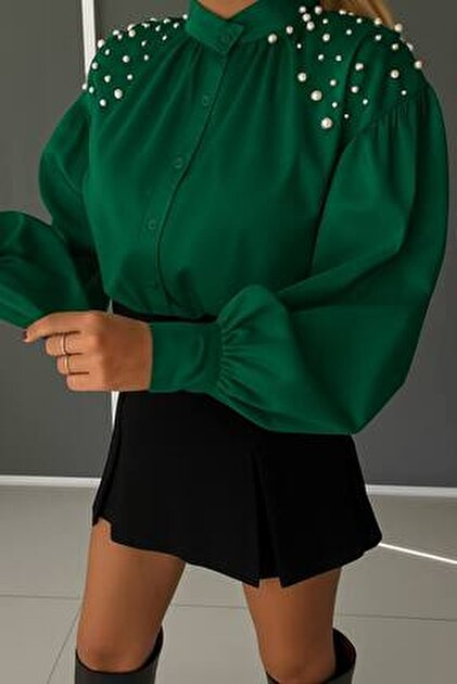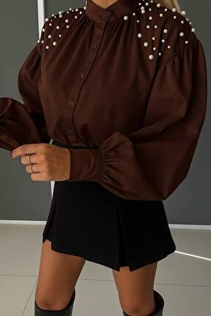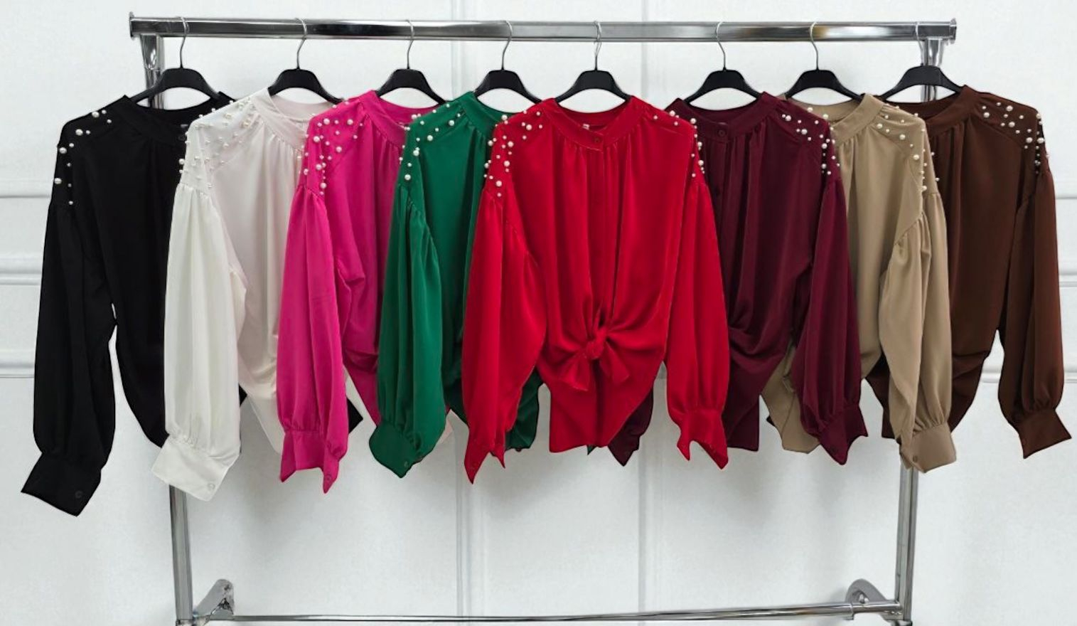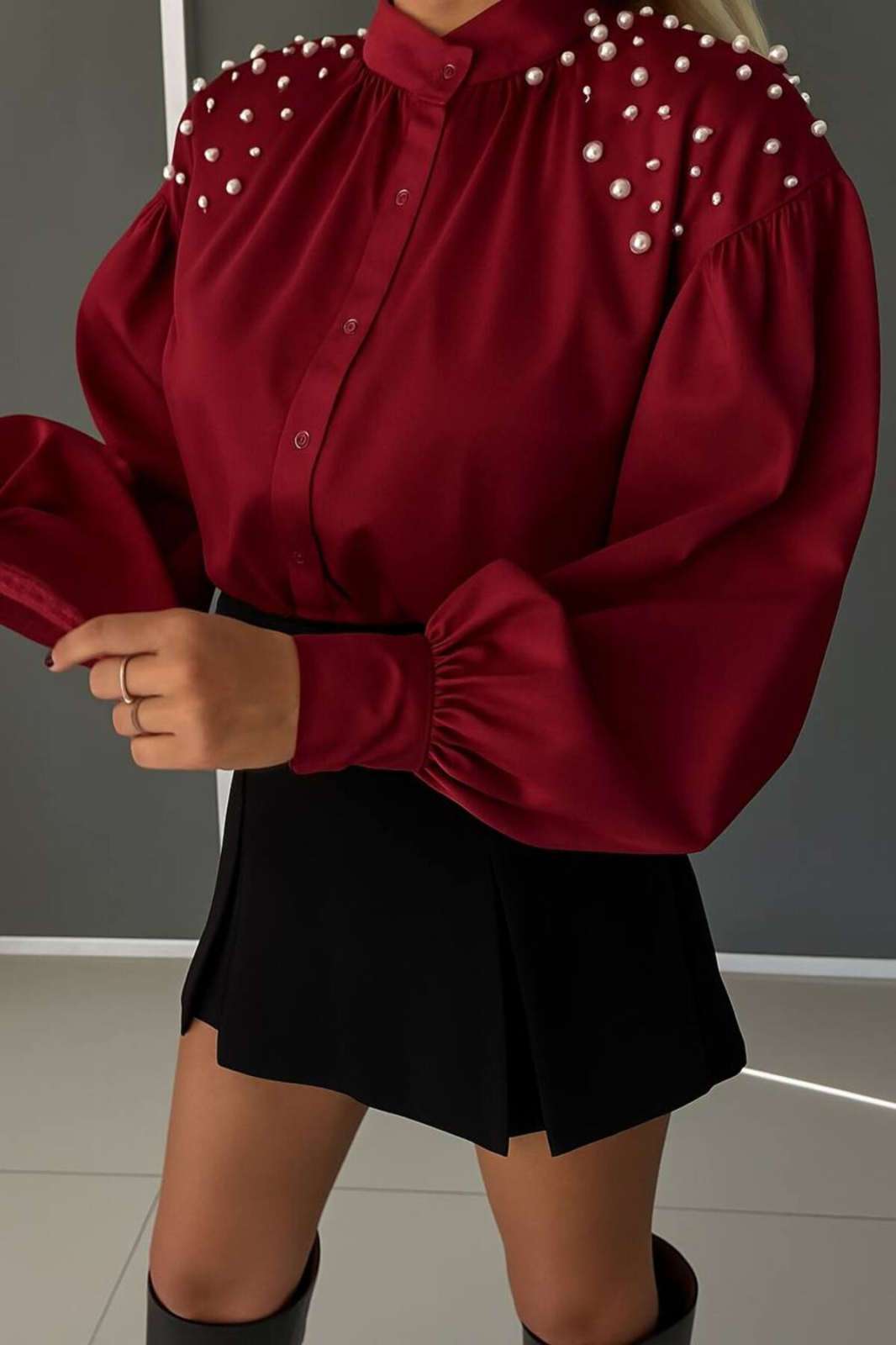 Cămașă Diafană cu Perle Decorative pe Umeri – Croi Lejer