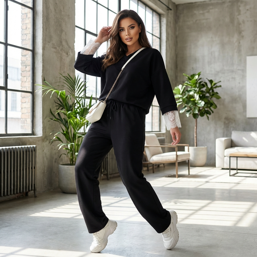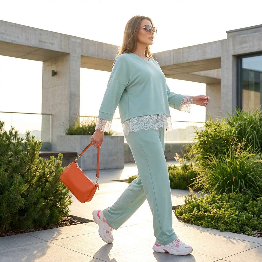 Versatilitate Marime: Datorita croiului relaxat, compleul avantajeaza diverse tipologii de corp, fiind potrivit pentru marimi de la S pana la XL.