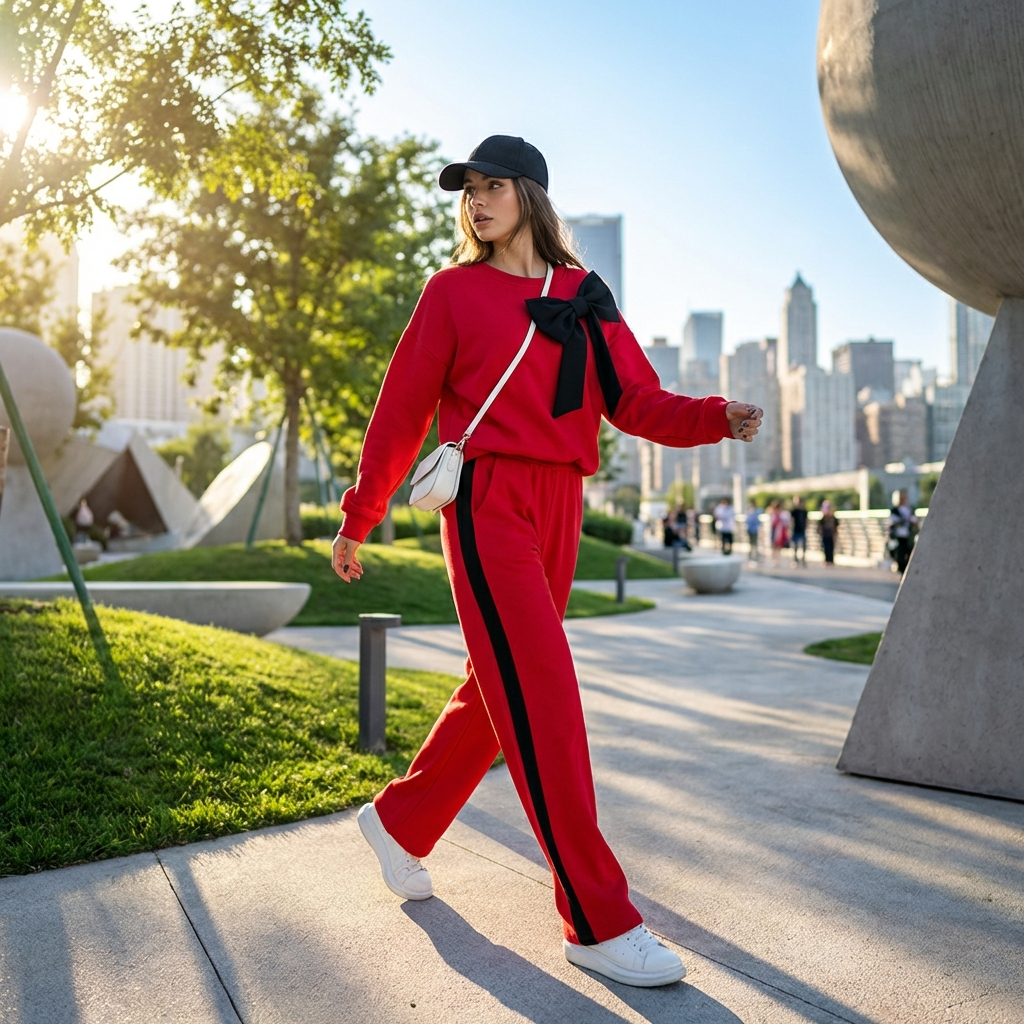 Pantaloni cu Talie Elastica: Pantalonii dispun de o banda elastica confortabila in talie si buzunare functionale, adaptandu-se perfect pe orice silueta.