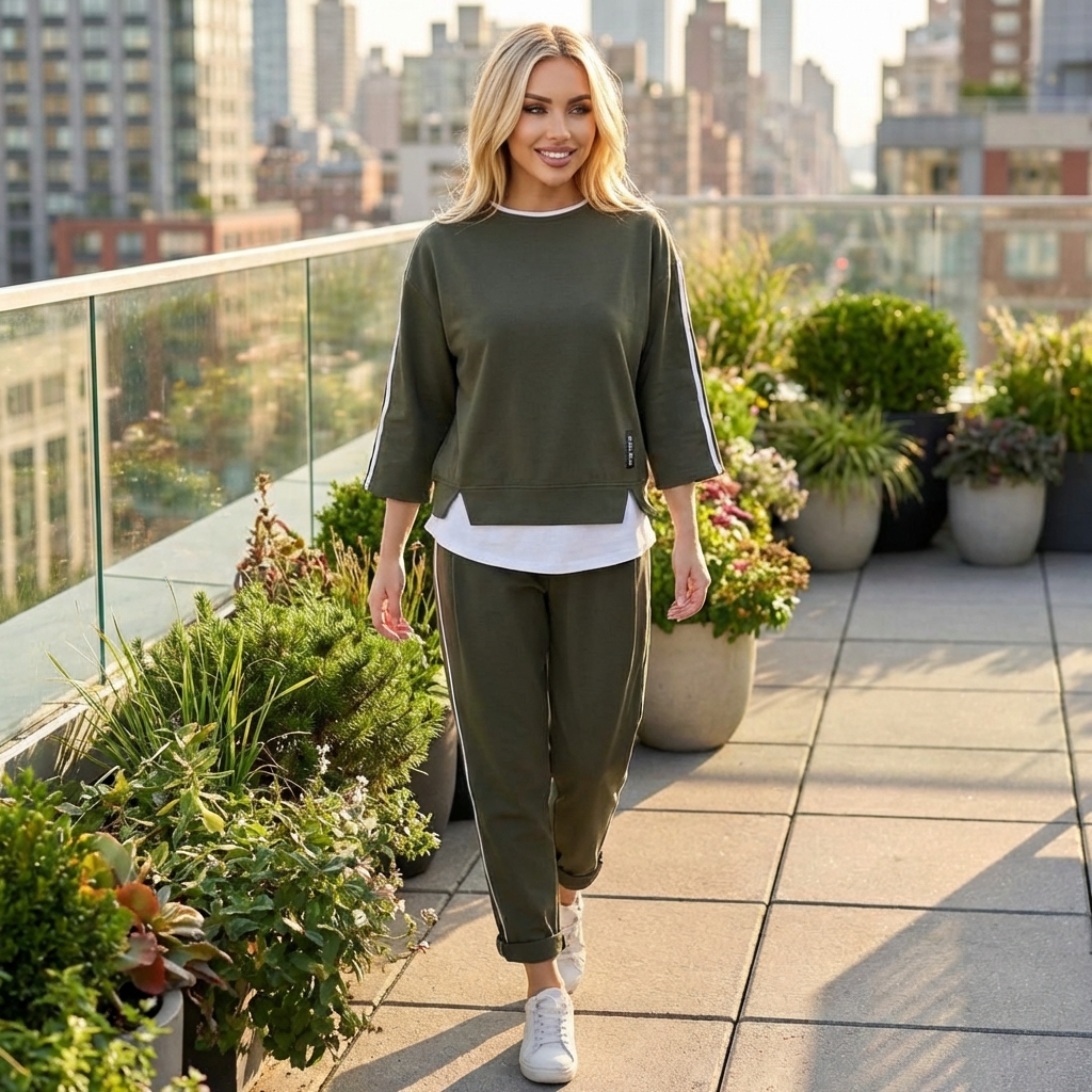 3. Casual Home-Office: Datorita continutului ridicat de bumbac, este setul ideal pentru momentele in care vrei sa te simti confortabil acasa, fara a neglija aspectul estetic.
