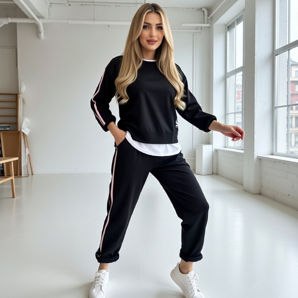 🚀 Set Sport-Casual Statement: Hanorac Crop si Pantaloni cu Benzi Laterale