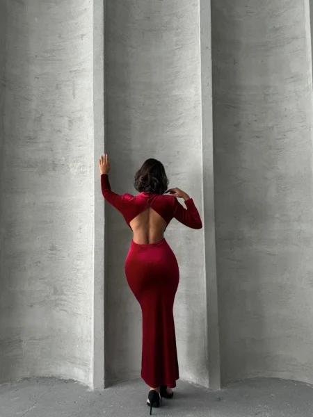 Rochie de seara maxi din catifea cu strasuri si maneca lunga
