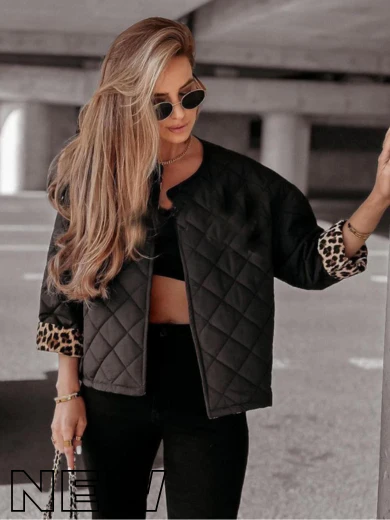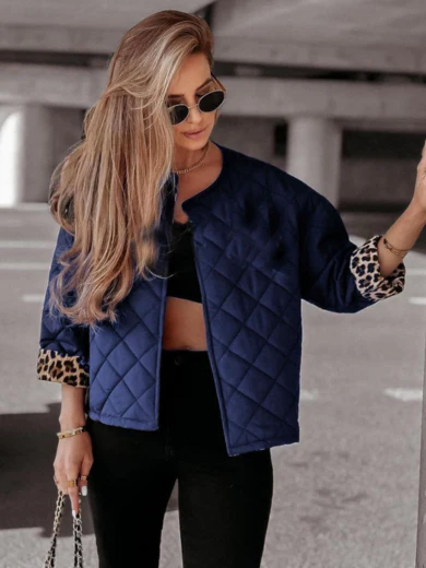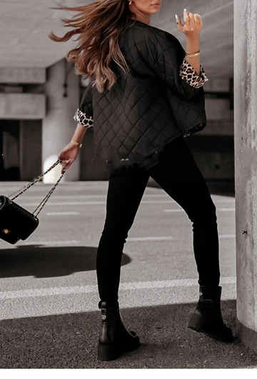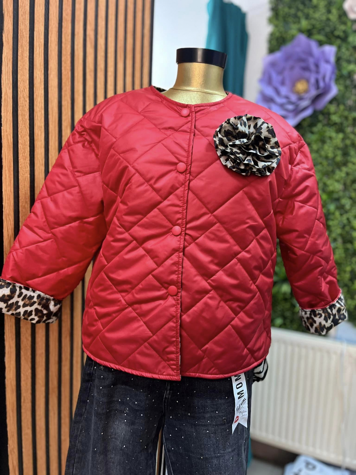 Jacheta Dama Matlasata cu Brosa si Captuseala Animal Print - Se potriveste pentru S, M, L