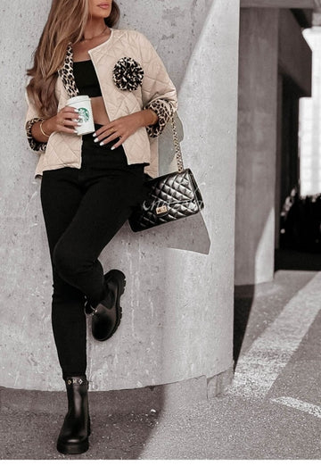 Jacheta Dama Matlasata cu Brosa si Captuseala Animal Print - Se potriveste pentru S, M, L