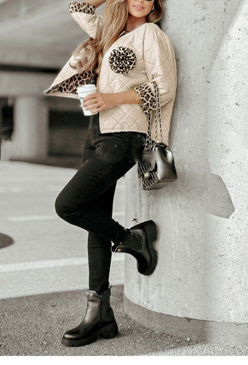 Jacheta Dama Matlasata cu Brosa si Captuseala Animal Print