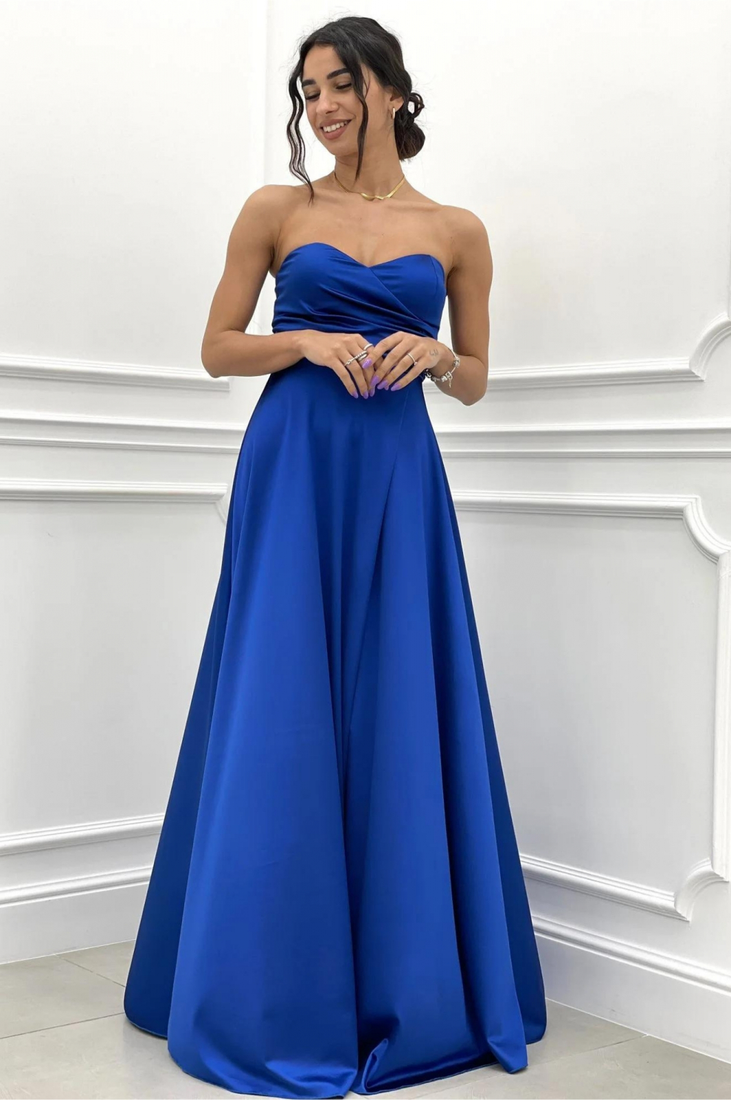 Rochie Dama Lunga cu Umerii goi, pliuri si Aspect Satinat - Milla