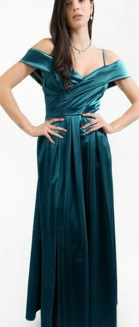 Rochie Dama Lunga Satinata cu Revere si Bretele