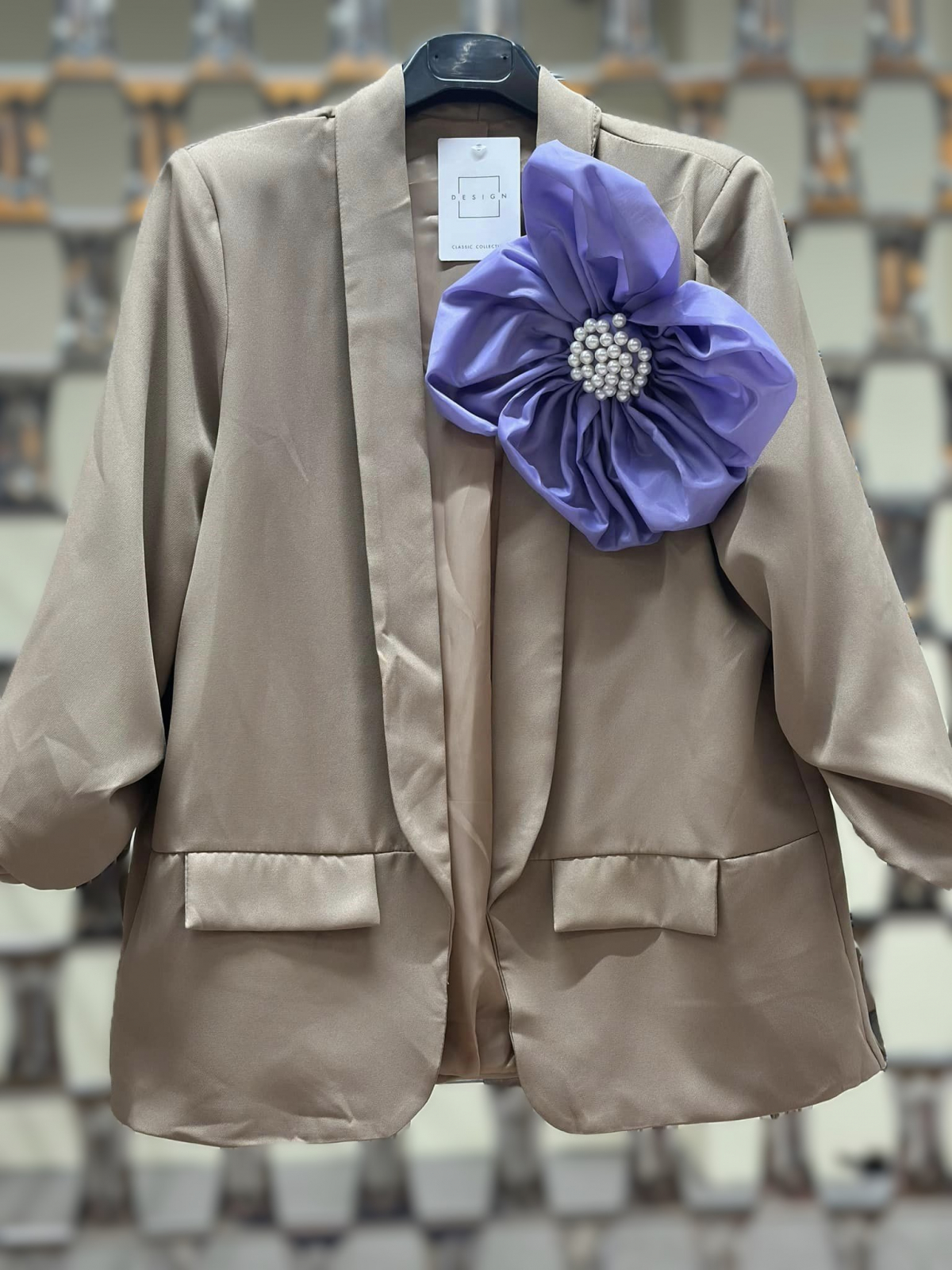 Sacoul este confecționat din materiale de înaltă calitate, asigurând o purtare plăcută și durabilitate. Floarea decorativă, împodobită cu perle delicate, adaugă un accent feminin și sofisticat, transformând orice outfit într-o declarație de stil.