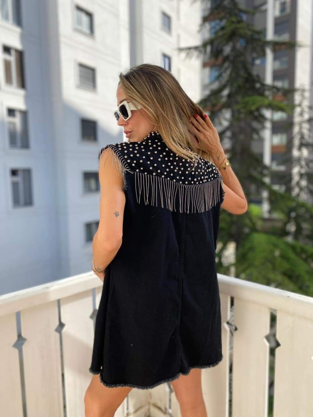 Vesta de blug cu tinte si franjuri